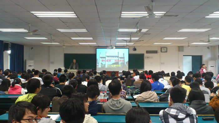 宁津生院士用通俗的语言,精彩的多媒体课件,深入浅出地介绍了测绘学科的基本概念、发展历史、科学地位与作用,以及新技术和发展前景,使新生能够更加直观地理解测绘学科的历史与前沿,对新生的大学学习和今后投身于测绘事业予以启发和指导。宁津生院士虽年已八旬,但仍然坚持战斗在教学科研一线。他幽默风趣、和蔼可亲的大师风范赢得了同学们的阵阵掌声。课间以及下课后,他依然忙碌,与学生交流,为学生签名,与学生合影。