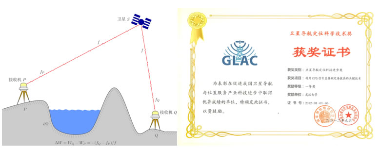 利用GPS信号测定重力位差及海拔高程差的原理图及获奖证书