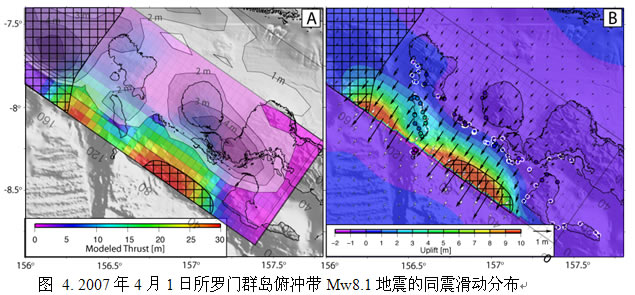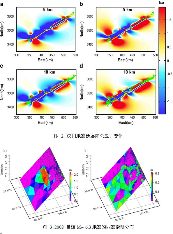 利用空间大地测量观测资料特别是GPS和InSAR资料,综合相关地球物理资料,联合反演研究地壳运动、地震断层的滑动分布破裂过程和地震库仑应力转移。主要成果有:(1)提出和建立了大地测量反演构造应力场的理论和方法;提出了轮回搜索-贝叶斯组合算法,解决了参数先验信息不明的反演问题;提出了利用赫尔默特方差估计方法确定联合反演各类观测权比例因子的方法及联合反演的序贯算法,采用交叉检验方法评价非线性反演结果精度,发展了大地测量地球物理联合反演理论;(2)建立了库仑应力统一正反演解析模型及其误差估计公式,给出了适用于求解一般地震断层类型的最佳破裂面模型,构制了更符合余震时空演化模式的库仑应力图并进行余震预测;(3)提出了地壳应变(率)参数反演的总体最小二乘法,发展了总体最小二乘估计理论。这些理论成果在中国大陆(图1)、汶川(图2) 、当雄(图3)和所罗门群岛(图4)等区域得到了广泛应用,成果获国际学术界高度评价。