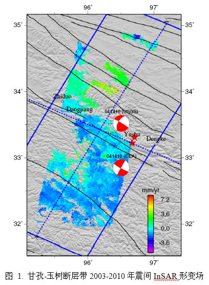 3) 利用高级时序InSAR分析技术获取了2001年可可西地震的震后InSAR形变场,该震后形变场的时间跨度为2003-2008年,覆盖区域为300 km×400 km,震后形变最大达8 cm,精度为1-2 mm/yr,是迄今为止覆盖区域最广、精度最高的InSAR震后形变场;采用震后余滑、粘弹性松弛和混合模型分析了该地震的震后形变机制。